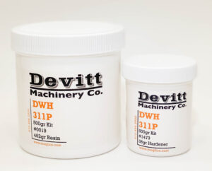 DWH grades are designed for static fits in machine assembly, they do not include low-friction fillers. DWH resins are produced in various viscosities and have more than 80% metallic fillers. DWH is used to mold static machine components in-place and to eliminate expensive machining and scraping. It can also be used as repair material for maintenance. Its ability to mold to any shape makes it possible to shim with 100% contact.