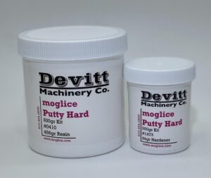 Moglice Putty Hard is an advanced, two-part repair epoxy, specifically engineered for restoring and upgrading machine ways, slides, and bearings. As a no-slump putty, it is the most common material used on standard way systems and can be easily applied to vertical and overhead surfaces without running or dripping. It functions as a moldable, low-friction way-liner to produce high-precision slideways with anti-stick-slip properties.